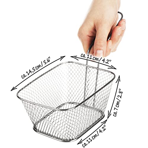 COM-FOUR® 6x Mini Frieten Serveermand – 430 Roestvrijstalen Snackschaal – Zilveren Mini Frituurmandjes – Serveermand met Handvat (Mand – 06 stuks)