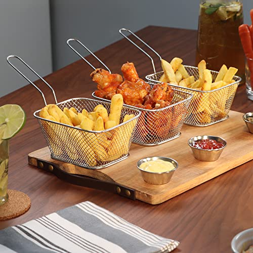 Mini Frieten Serveermand – 430 roestvrijstalen snackkom – Zilveren mini-frituurmandjes – Serveermand met handvat