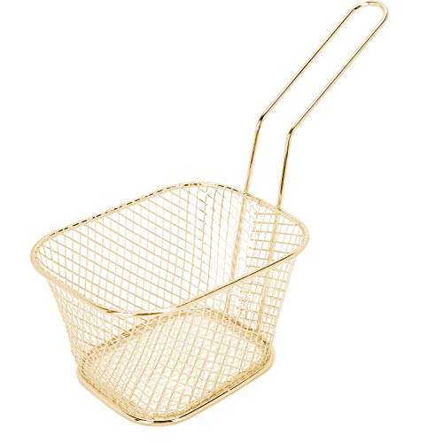 Specification: Frieten Mand Vierkante Vorm Roestvrijstalen Frituurmand Lichtgewicht Stomen Frituren Blancheren om te koken(Golden)